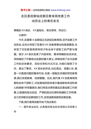在区委巡察组巡察区教育局党委工作动员会上的表态发言.docx