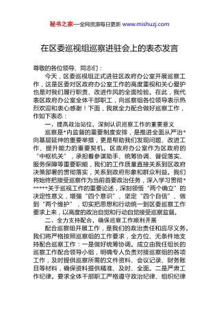 在区委巡视组巡察进驻会上的表态发言.docx
