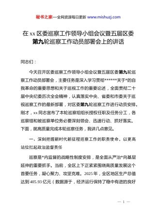 在XX区委巡察工作领导小组会议暨五届区委第九轮巡察工作动员部署会上的讲话.docx