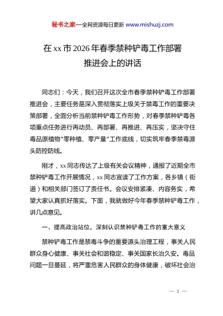 在XX市2026年春季禁种铲毒工作部署推进会上的讲话.docx