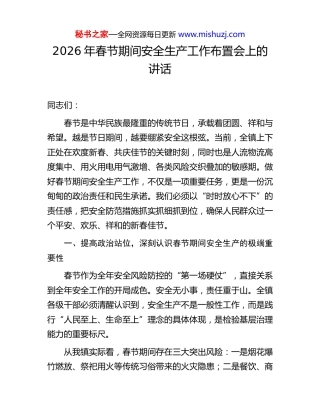 2026年春节期间安全生产工作布置会上的讲话.docx