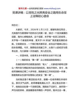 党课讲稿:以党性之光照亮安全之路 用生命至上诠释初心使命.docx