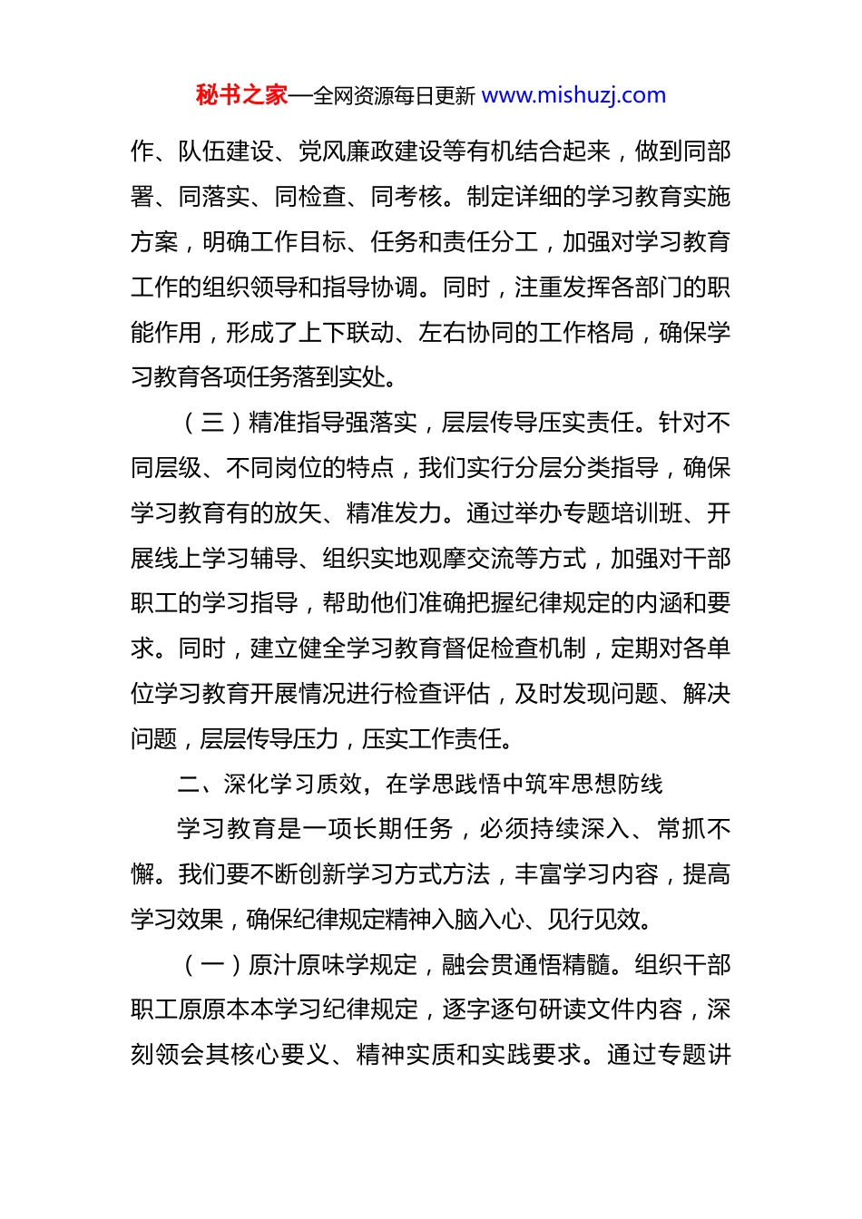 秘书之家—全网资源每日更新 www.mishuzj.com在市税务 2025 年作风建设总结大会上的讲话 同志们:开展深入贯彻落实学习教育,是加强税务系统作风建设、推动税收事业高质量发展的重要举措。今天,我们召开总结大会,全面回顾这段时间的工作,总结经验、查找不足,为持续深化作风建设、建立长效机制奠定坚实基础。下面,我讲三个方面意见。一、总结过往成效,在协同共进中凝聚奋进动力自深入贯彻落实学习教育开展以来,全系统上下高度重视、积极行动,形成了强大的工作合力,取得了一系列显著成效。(一)领导垂范显担当,上行下效汇聚合力。市税务系统各级领导干部以身作则、率先垂范,带头学习规定精神,带头遵守各项纪律要求,为广大干部职工树立了良好榜样。在学习教育过程中,各级领导班子成员积极参加集中学习、专题研讨,深入基层开展调研指导,以实际行动带动广大干部职工积极参与学习教育,形成了以上率下、层层推进的良好局面。(二)统筹规划抓推进,纵横联动形成合力。我们坚持系统观念,加强统筹协调,将学习教育与税收中心工秘书之家—全网资源每日更新 www.mishuzj.com作、队伍建设、党风廉政建设等有机结合起来,做到同部署、同落实、同检查、同考核。制定详细的学习教育实施方案,明确工作目标、任务和责任分工,加强对学习教育工作的组织领导和指导协调。同时,注重发挥各部门的职能作用,形成了上下联动、左右协同的工作格局,确保学习教育各项任务落到实处。(三)精准指导强落实,层层传导压实责任。针对不同层级、不同岗位的特点,我们实行分层分类指导,确保学习教育有的放矢、精准发力。通过举办专题培训班、开展线上学习辅导、组织实地观摩交流等方式,加强对干部职工的学习指导,帮助他们准确把握纪律规定的内涵和要求。同时,建立健全学习教育督促检查机制,定期对各单位学习教育开展情况进行检查评估,及时发现问题、解决问题,层层传导压力,压实工作责任。二、深化学习质效,在学思践悟中筑牢思想防线学习教育是一项长期任务,必须持续深入、常抓不懈。我们要不断创新学习方式方法,丰富学习内容,提高学习效果,确保纪律规定精神入脑入心、见行见效。(一)原汁原味学规定,融会贯通悟精髓。组织干部职工原原本本学习纪律规定,逐字逐句研读文件内容,深刻领会其核心要义、精神实质和实践要求。通过专题讲秘书之家—全网资源每日更新 www.mishuzj.com座、集中学习、个人自学等多种形式,引导干部职工准确把握各项规定的具体要求,做到学深悟透、知行合一。同时,加强对学习情况的督促检查,确保学习质量和效果。(二)案例警示筑防线,警钟长鸣守底线。充分发挥典型案例的警示教育作用,定期组织干部职工观看警示教育片、学习违纪违法案例通报,深入剖析案例背后的原因和教训,引导干部职工以案为鉴、警钟长鸣。通过开展廉政谈话、廉政党课等活动,加强对干部职工的廉洁自律教育,增强他们的纪律意识和规矩意识,自觉守住廉洁从政的底线。(三)多元培训促提升,学用结合强本领。结合税务工作实际,开展形式多样的培训活动,不断提升干部职工的业务能力和综合素质。通过举办业务培训班、专题研讨班、岗位练兵等活动,加强对干部职工的税收业务知识、法律法规、廉政纪律等方面的培训,提高他们的业务水平和工作能力。同时,注重将学习教育与实际工作相结合,引导干部职工将所学知识运用到实际工作中,做到学用结合、以学促干。三、聚焦长效机制,在真抓实干中推动作风转变作风建设永远在路上,必须建立健全长效机制,持续巩固和拓展学习教育成果,推动税务系统作风建设不断取秘书之家—全网资源每日更新 www.mishuzj.com得新成效。(一)学以致用促发展,作风建设融入工作实践。坚持把学习教育成果转化为推动工作的强大动力,将作风建设贯穿于税收工作的全过程。广大干部职工要立足本职岗位,认真履行工作职责,积极主动作为,以良好的作风和饱满的热情投入到工作中。在落实减税降费政策、优化税收营商环境、加强税收征管等重点工作中,要勇于担当、敢于负责,切实解决纳税人缴费人的痛点、难点、堵点问题,不断提高纳税人缴费人的满意度和获得...