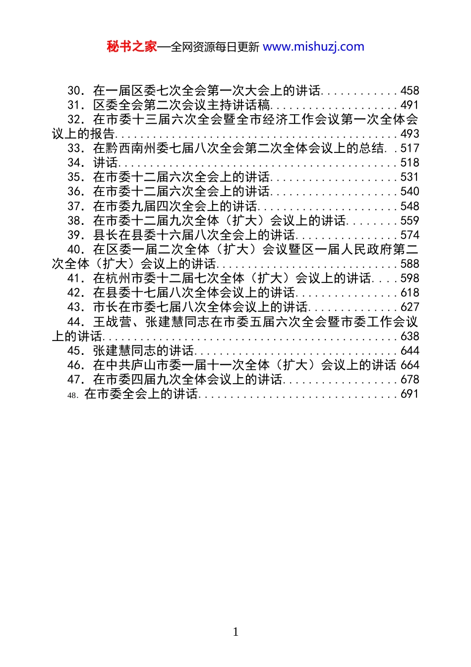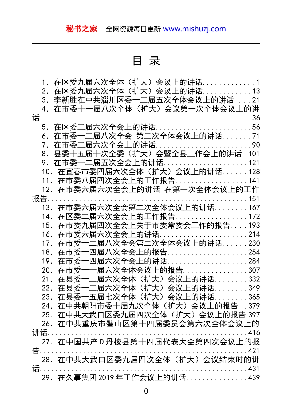 秘书之家—全网资源每日更新 www.mishuzj.com目 录1.在区委九届六次全体(扩大)会议上的讲话.............12.在区委九届六次全体(扩大)会议上的讲话............133.李新胜在中共淄川区委十二届五次全体会议上的讲话....214.在市委十一届八次全体(扩大)会议第一次全体会议上的讲话......................................................365.在区委二届六次全会上的讲话........................566.在市委十二届八次全会 第二次全体会议上的讲话.......717.在市委二届六次全会上的讲话........................908.县委十五届十次全委(扩大)会暨全县工作会上的讲话. 1019.在市委十二届五次全会上的讲话.....................12110.在宜春市委四届六次全体(扩大)会议上的讲话......12811.在市委八届四次全会上的工作报告..................14112.在市委六届六次全会上的讲话 在第一次全体会议上的工作报告...................................................15113.在市委六届六次全会第二次全体会议上的讲话........16714.在区委二届六次全会上的工作报告..................17215.在市委九届四次全会上关于市委常委会工作的报告....19316.在市委六届六次全会上的讲话......................21417.在市委十二届八次全会第二次全体会议上的讲话......23018.在市委十四届八次全会上的报告....................25419.在市委十四届六次全会上的讲话....................28420.在市委十一届六次全体会议上的报告................30721.在县委十二届六次全体(扩大)会议上的讲话........33222.在县委十二届六次全体(扩大)会议上的讲话........34923.在县委十五届七次全体(扩大)会议上的讲话........36524.在中共朝阳市委十届九次全体(扩大)会议上的报告. .37925.在中共大武口区委九届四次全体(扩大)会议上的报告 39726.在中共重庆市璧山区第十四届委员会第六次全体会议上的讲话...................................................41627.在中国共产 D 丹棱县第十四届代表大会第四次会议上的报告.....................................................42128.在中共大武口区委九届四次全体(扩大)会议结束时的讲话.....................................................43129.在久事集团 2019 年工作会议上的讲话...............4390秘书之家—全网资源每日更新 www.mishuzj.com30.在一届区委七次全会第一次大会上的讲话............45831.区委全会第二次会议主持讲话稿....................49132.在市委十三届六次全会暨全市经济工作会议第一次全体会议上的报告.............................................49333.在黔西南州委七届八次全会第二次全体会议上的总结. .51734.讲话............................................51835.在市委十二届六次全会上的讲话....................53136.在市委十二届六次全会上的讲话....................54037.在市委九届四次全会上的讲话......................54838.在市委十二届九次全体(扩大)会议上的讲话........55939.县长在县委十六届八次全会上的讲话................57440.在区委一届二次全体(扩大)会议暨区一届人民政府第二次全体(扩大)会议上的讲话.............................58841.在杭州市委十二届七次全体(扩大)会议上的讲话....59842.在县委十七届八次全体会议上的讲话................61843.市长在市委七届八次全体会议上的讲话..............62744.王战营、张建慧同志在市委五届六次全会暨市委工作会议上的讲话...............................................63845.张建慧同志的讲话................................64446.在中共庐山市委一届十一次全体(扩大)会议上的讲话 66447.在市委四届九次全体会议上的讲话..................67848.在市委全会上的讲话...............................6911秘书之家—全网资源每日更新 www.mishuzj.com在区委九届六次全体(扩大)会议上的讲话何慕良(2019 年 1 月 14 日)同志...