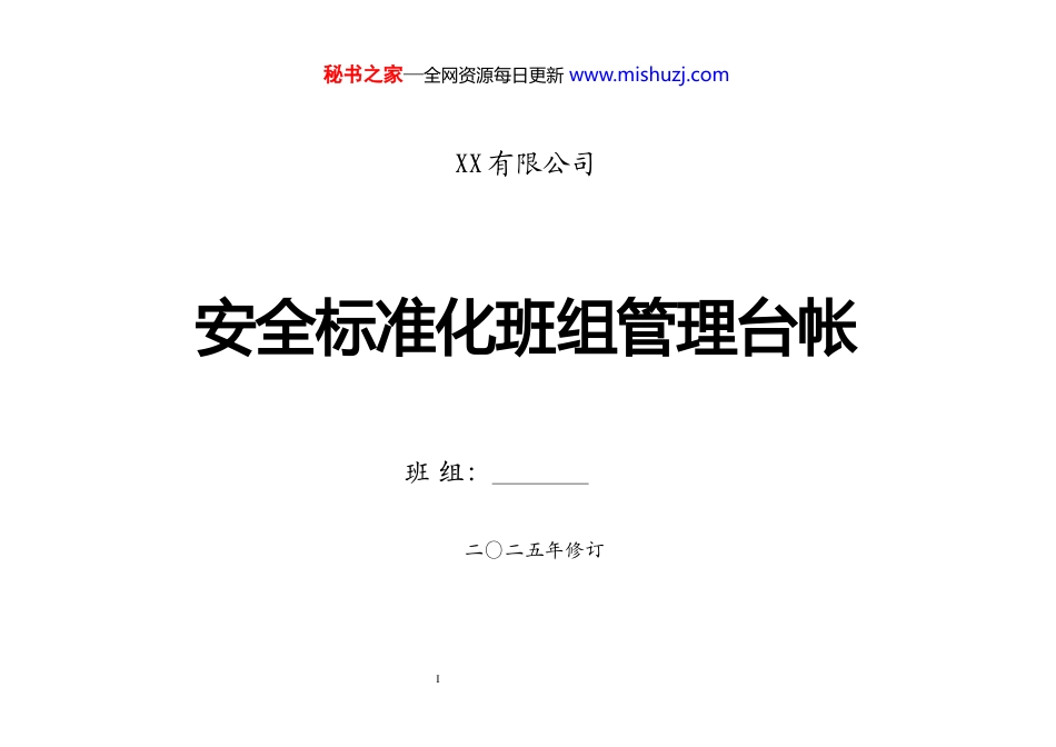秘书之家—全网资源每日更新 www.mishuzj.com安全标准化班组管理台帐I秘书之家—全网资源每日更新 www.mishuzj.comXX 有限公司安全标准化班组管理台帐班 组: 二〇二五年修订II秘书之家—全网资源每日更新 www.mishuzj.com目 录1、 班组安全生产目标责任书2、 班组安全管理制度3、 班组网络图4、 班组安全生产会议记录5、 班组安全生产检查台帐6、 班组安全活动记录7、 班组违章记录(以三违为重点的进行的记录)8、 班组安全教育及培训记录(班组教育记录、包括入厂新工教育、员工换岗教育、脱离本岗 3 个月以上的复工教育特种作业培训教育,考试试卷留底。班组技术培训记录)9、 班组事故预想、应急演练记录III秘书之家—全网资源每日更新 www.mishuzj.com目 录安全标准化班组管理台帐安全目标责任书.............................................1安全标准化班组安全管理规范.................................................................2班组安全管理制度.....................................................................................4班长的安全职责.......................................................................................13班员的安全责任.......................................................................................14设备巡回检查制度...................................................................................15交接班管理制度.......................................................................................20班组人员花名册.......................................................................................24班组安全会议记录...................................................................................25班组“一班三检”制...............................................................................26班组安全检查表.......................................................................................28班组安全活动记录...................................................................................29班组违章记录表.......................................................................................30班组安全生产知识教育培训记录...........................................................31新进职工“三级安全教育”培训...........................................................32班组应急预案演练记录...........................................................................33IV秘书之家—全网资源每日更新 www.mishuzj.com第 1 页 共 33 页秘书之家—全网资源每日更新 www.mishuzj.comXX 有限公司 2025 年度安全目标责任书考核单位:XX 有限公司责任组班:目标责任书内容由各部门拟定后与班组签订第 2 页 共 33 页秘书之家—全网资源每日更新 www.mishuzj.com安全标准化班组安全管理规范一、安全生产理念以人为本,预防为先,规范操作,平稳发展。二、班组安全生产目标三、在岗人员 10 个必须1、必须树立“安全第一”的思想;2、必须穿戴好劳动保护用品;3、必须严格按照安全规程操作;4、必须服从领导听指挥;5、在岗位时必须勤检查、勤联系;6、工具必须对号入座,放在指定位置;7、必须坚守岗位;8、必须保持岗位文明卫生;9、发现隐患必须及时报告10、必须严格执行交接班制度,并办好交接手续。四、操作人员 6 个严格1、严格进行交接班;2、严格进行巡回检查; 3、严格控制工艺指标;4、严格执行操作票;5、严格遵守劳动纪律;6、严格执行有关安全规定。五、班组长 5 个不准1、危险作业未经审批,不准作业;2、设备安全防护装置不全、不灵,不准使用;1、作业人员持证上岗率 100%;2、安全教育率及合格率 100%;3、事故隐患整改率 99.9%;4、无“三违”;5、生产操作、设备事故为零;6、人身伤害事故为零;7、火灾、爆炸、中毒事故为零;8、职业病发...