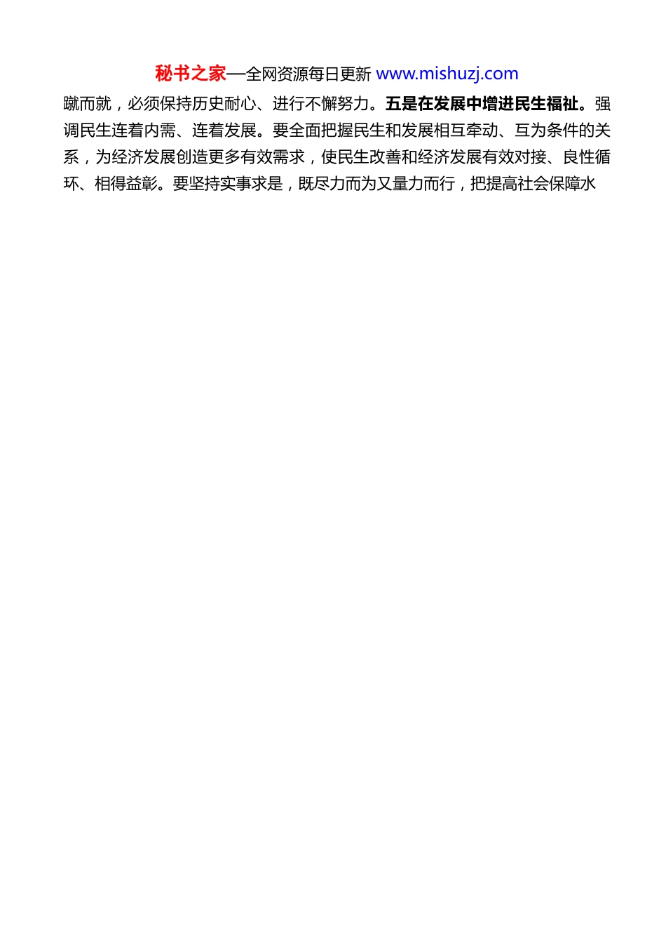 秘书之家—全网资源每日更新 www.mishuzj.com加大保障和改善民生力度全国妇联主席谌贻琴(2025 年 11 月 18 日)习近平总书记指出,中国式现代化,民生为大。党和政府的一切工作,都是为了老百姓过上更加幸福的生活。党的二十届四中全会通过的《中共中央关于制定国民经济和社会发展第十五个五年规划的建议》(以下简称《建议》),对保障和改善民生作出一系列新的重大部署。我们要始终把保障和改善民生紧紧抓在手上,不断实现人民对美好生活的向往。一、深入学习贯彻习近平总书记关于保障和改善民生的重要论述,坚决把思想和行动统一到党中央决策部署上来党的十八大以来,习近平总书记对加大保障和改善民生力度、增强人民群众获得感幸福感安全感作出一系列重要论述,科学回答了社会民生领域的重大理论和实践问题,为我们指明了前进方向、提供了根本遵循。一是坚持和加强党的全面领导。习近平总书记强调中国共产党领导是中国特色社会主义最本质的特征,是中国特色社会主义制度的最大优势。要把尊重民意、汇集民智、凝聚民力、改善民生贯穿党治国理政全部工作之中,巩固党执政的阶级基础,厚植党执政的群众基础。二是坚持以人民为中心的发展思想。强调江山就是人民,人民就是江山。民生工作离老百姓最近,同老百姓生活最密切。人民对美好生活的向往,就是我们的奋斗目标。我们要坚守人民至上理念,突出现代化方向的人民性。谋划“十五五”时期经济社会发展,要不忘初心,把造福人民作为根本价值取向。三是坚持全面深化改革。强调要从人民的整体利益、根本利益、长远利益出发谋划和推进改革,走好新时代党的群众路线,注重从就业、增收、入学、就医、住房、办事、托幼养老以及生命财产安全等老百姓急难愁盼中找准改革的发力点和突破口。四是扎实推进全体人民共同富裕。强调民生保障事关人民群众切身利益,是促进共同富裕、打造高品质生活的基础性工程。实现全体人民共同富裕是一个长期的历史过程,不可能一秘书之家—全网资源每日更新 www.mishuzj.com蹴而就,必须保持历史耐心、进行不懈努力。五是在发展中增进民生福祉。强调民生连着内需、连着发展。要全面把握民生和发展相互牵动、互为条件的关系,为经济发展创造更多有效需求,使民生改善和经济发展有效对接、良性循环、相得益彰。要坚持实事求是,既尽力而为又量力而行,把提高社会保障水秘书之家—全网资源每日更新 www.mishuzj.com平建立在经济和财力可持续增长的基础之上。六是加强普惠性、基础性、兜底性民生建设。强调要深入群众、深入基层,采取更多惠民生、暖民心举措,着力解决好人民群众急难愁盼问题。重在提升公共服务水平,在教育、医疗、养老、住房等人民群众最关心的领域精准提供基本公共服务,兜住困难群众基本生活底线。要格外关注、格外关爱、格外关心困难群众,时刻把他们的安危冷暖放在心上。“十五五”时期,要进一步把思想和行动统一到习近平总书记重要论述上来,深刻认识和准确把握加大保障和改善民生力度的重要意义、目标任务、方针原则、实践要求,多谋民生之利、多解民生之忧,切实抓好《建议》相关部署的贯彻落实,用心用情增进民生福祉。二、保障和改善民生工作取得显著成效,人民生活品质不断提高实现人民对美好生活的向往是中国式现代化的出发点和落脚点。目前,我国已建成世界规模最大的教育体系、社会保障体系、医疗卫生体系、城市住房保障体系,形成世界最大规模的中等收入群体。以习近平同志为核心的党中央始终坚持以实际行动提升人民群众的幸福指数,民生建设取得历史性、开创性成就。一是就业形势总体平稳,“十四五”以来城镇新增就业连续 4 年超过 1200万人,城镇调查失业率低于预期控制目标,脱贫人口务工规模始终保持在 3000万人以上。二是居民收入平稳增长,全国居民人均可支配收入从 2021 年的 3.51万元增至 2024 年的 4.13 万元,城乡居民收入比缩小至 2.34∶1。三是教育普及程度持续提高,推动逐步免除学前教育保育教育费,2024 年学前教育、高中阶段教育毛入学(园)率均达 92%,全国 2895 个县域全部实现义务教育基本均衡发展。四是社会保障体系建设迈入新...