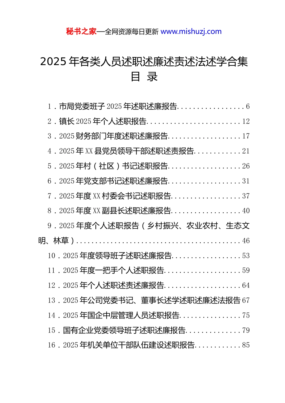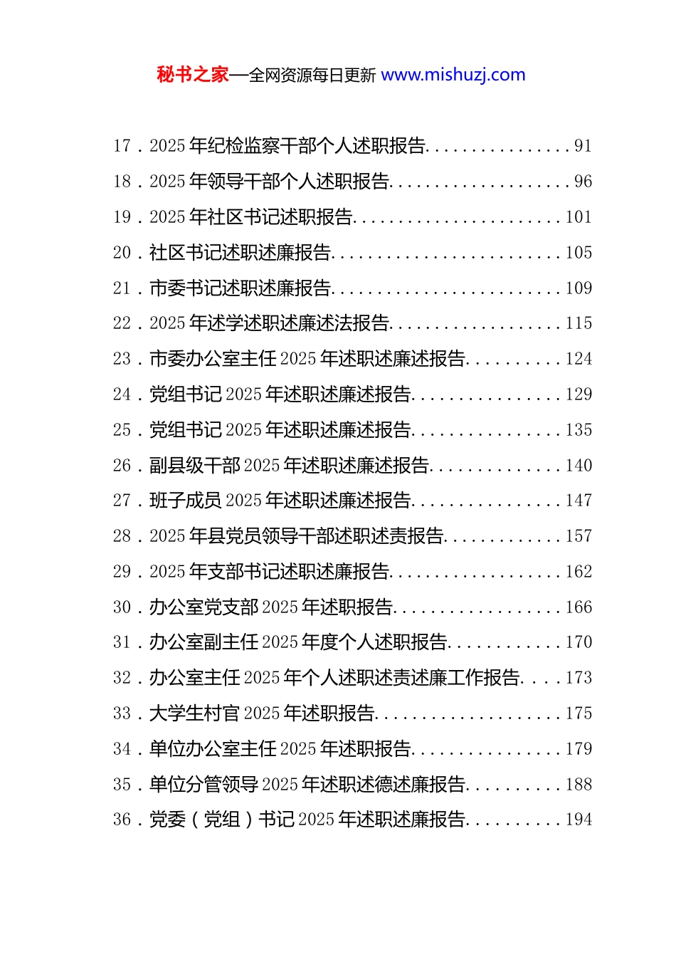 秘书之家—全网资源每日更新 www.mishuzj.com2025 年各类人员述职述廉述责述法述学合集目 录1.市局党委班子 2025 年述职述廉报告.................62.镇长 2025 年个人述职报告........................123.2025 财务部门年度述职述廉报告...................174.2025 年 XX 县党员领导干部述职述责报告............215.2025 年村(社区)书记述职报告...................266.2025 年党支部书记述职述廉报告...................317.2025 年度 XX 村委会书记述职报告..................378.2025 年度 XX 副县长述职述廉报告..................409.2025 年度个人述职报告(乡村振兴、农业农村、生态文明、林草)...........................................4610.2025 年度领导班子述职述廉报告..................5311.2025 年度一把手个人述职报告....................5912.2025 年个人述职述责述廉报告....................6413.2025 年公司党委书记、董事长述学述职述廉述法报告 6714.2025 年国企中层管理人员述职报告................7515.国有企业党委领导班子述职述廉报告..............7916.2025 年机关单位干部队伍建设述职报告............85秘书之家—全网资源每日更新 www.mishuzj.com17.2025 年纪检监察干部个人述职报告................9118.2025 年领导干部个人述职报告....................9619.2025 年社区书记述职报告.......................10120.社区书记述职述廉报告.........................10521.市委书记述职述廉报告.........................10922.2025 年述学述职述廉述法报告...................11523.市委办公室主任 2025 年述职述廉述报告..........12424.党组书记 2025 年述职述廉述报告................12925.党组书记 2025 年述职述廉述报告................13526.副县级干部 2025 年述职述廉述报告..............14027.班子成员 2025 年述职述廉述报告................14728.2025 年县党员领导干部述职述责报告.............15729.2025 年支部书记述职述廉报告...................16230.办公室党支部 2025 年述职报告..................16631.办公室副主任 2025 年度个人述职报告............17032.办公室主任 2025 年个人述职述责述廉工作报告. . . .17333.大学生村官 2025 年述职报告....................17534.单位办公室主任 2025 年述职报告................17935.单位分管领导 2025 年述职述德述廉报告..........18836.党委(党组)书记 2025 年述职述廉报告..........194秘书之家—全网资源每日更新 www.mishuzj.com37.党组书记一岗双责述职报告.....................19738.分管领导述职述廉报告.........................20439.公司办公室主任个人述职报告...................20740.公司党委书记 2025 年度述职报告................21441.公司领导 2025 年度个人述职述廉报告............21842.国企纪委书记述职报告履职报告.................22443.机关支部书记 2025 年述职述廉报告..............23444.基层公务员转正述职报告.......................23945.基层政工领导干部 2025 年述职述廉报告..........24346.集团公司办公室主任 2025 年个人述职报告........24747.科级领导干部试用期转正述职报告...............25348.领导干部 2025 年度述职述廉述法报告............25749.工商局局长 2025 年个人述职述廉报告............26350.农业农村局局长 2025 年个人述职述廉报告........27051.办公室副主任 2025 年个人述职报告..............27352.领导干部 2025 年试用期满一年述职报告..........27553.民政局党组书记 2025 年抓人才工作述职报告......27954.某派驻纪检监察组组长 2025 年度述职述廉述学报告 28455.某镇班子成员 2025 年述职述廉报告..............29156.农业农村局局长 2025 年度述职述廉报告..........295秘书之家—全网资源每日更新 www.mishuzj.com57....