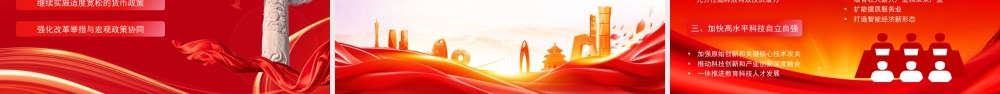 《 2026 年政府工作报告》专题辅导学习贯彻全国“两会”精神,凝聚推进中国式现代化我市实践奋进力量主讲人: A 书记目录01 2025 年工作回顾02 “ 十五五”时期主要目标和重大任务03 2026 年经济社会发展总体要求和政策取向04 2026 年政府工作任务一、 2025 年工作回顾2025 年工作回顾:总体成绩经济运行平稳+5%/ 140 万亿国内生产总值增长 5% ,总量达 140.19 万亿元。就业总体稳定1267 万人城镇新增就业 1267 万人,调查失业率平均 5.2% 。民生保障有力同步增长居民收入增长与经济增长同步,脱贫攻坚成果巩固。粮食产量新高1.43 万亿斤粮食产量再创新高,确保了国家粮食安全。2025 年,我国经济顶住压力展现强大韧性,各项指标稳中向好,为迈向新发展阶段奠定坚实基础。发展向新向优,彰显蓬勃活力科技创新成果丰硕人工智能、生物医药、量子科技等研发应用走在世界前列,芯片自主研发取得新突破。产业结构持续优化高技术制造业、装备制造业增加值分别增长9.4% 、 9.2% ,新能源汽车年产量超 1600 万辆。绿色发展成效显著单位国内生产总值能耗降低5.1% ,生态环境质量持续改善,绿色低碳转型稳步推进。新质生产力稳步发展,充分体现了我国经济向新向优的蓬勃活力主要工作:实施积极有为的宏观政策财政与货币政策协同发力实施积极的财政政策与适度宽松的货币政策,有效对冲经济下行压力,为市场注入强劲动力。加力扩围消费品以旧换新深入实施相关方案,带动商品销售额超过2.6 万亿元,有效释放消费潜力。持续用力稳楼市、稳股市保障房地产市场平稳发展,促进资本市场回稳回暖,维护经济金融大局稳定。深入实施一揽子化债方案有效化解地方政府债务风险,牢牢守住不发生系统性风险的底线。主要工作:坚持创新驱动发展强化国家战略科技力量全社会研发经费投入强度达到2.8%推进制造业数字化转型实施“人工智能 +” 行动行业应用加快落地释放数据要素潜力数字经济核心产业增加值占比超10.5%主要工作:深化改革开放与民生保障深化改革开放扎实落实改革部署,推进全国统一大市场建设,稳步扩大 对 外 开 放 , 激 发 市 场 活力。统筹城乡发展推进新型城镇化,实施乡村振兴战略,常住人口城镇化率达到 67.9% ,促进城乡融合。切实保障民生稳 就 业 、 推 进 教 育 强 国 建设、完善医疗养老体系,不断 提 升 群 众 获 得 感 、 幸 福感、安全感。坚持以人民为中心的发展思想,让改革发展成果更多更公平惠及全体人民“ 十四五”时期:重大成就回顾经济总量实现新跃升GDP 年均增长 5.4% ,连续跨越多个万亿台阶,经济韧性更强。科技和产业创新突破攻克一批关键核心技术,制造业增加值稳居全球第一。改革开放迈出新步伐重点领域改革扎实推进,高水平对外开放不断扩大。民生福祉达到新水平居民收入稳步增长,就业保持稳定,社保体系更加健全。生态文明建设新进步生态环境质量持续改善,建成全球最大可再生能源体系。安全保障能力新提升有效防范化解风险,守住了不发生系统性风险的底线。二、“十五五”时期主要目标和重大任务“ 十五五”规划:主要目标指标经济发展GDP 增长保持在合理区间,为2035 年目标打基础。创新驱动全社会研发经费投入年均增长 7%以上。民生福祉涵盖就业、收入、教育、医疗、健康、养老等七大指标。绿色低碳单位 GDP 二氧化碳排放累计降低17% 。安全保障粮食产能达 1.45 万亿斤,能源产能达 58 亿吨标准煤。重大战略任务:推动高质量发展发展新质生产力是高质量发展的内在要求,需加快形成新质生产力,为经济发展注入强劲动力。构建现代化产业体系以先进制造业为骨干,推动产业结构优化升级,提升产业链供应链韧性和安全水平。高水平科技自立自强加强原始创新和关键核心技术攻关,突破“卡脖子”难题,夯实科技强国建设基础。建设美丽中国持续推进污染防治,加快发展方式绿色转型,确保碳达峰目标如期实现。重大战略任务:做强国内大循环坚持扩大内需战略基点增强国内大循环内生动力和可靠性,大力提振消费与扩大有效投资。建设全国统一大市场破除地方保护和市场分割,打通制约经...