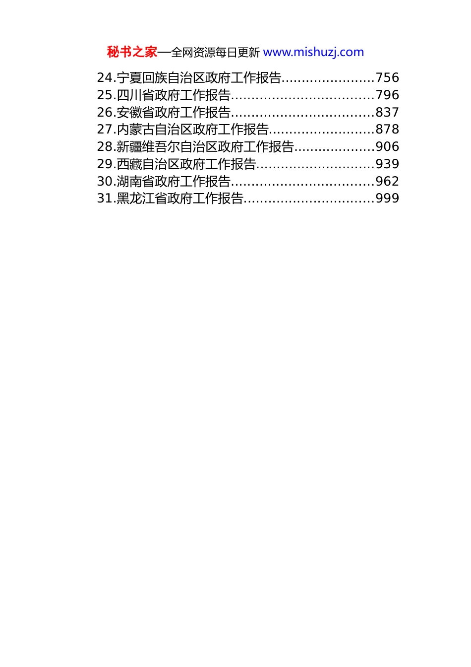 秘书之家—全网资源每日更新 www.mishuzj.com2026 年 31 个省级政府工作报告汇编(31篇)目录1.北京市政府工作报告.........................................32.天津市政府工作报告.......................................333.上海市政府工作报告.......................................634.重庆市人民政府工作报告...............................1005.浙江省政府工作报告.....................................1426.河南省政府工作报告.....................................1607.河北省政府工作报告.....................................1848.贵州省政府工作报告.....................................2029.海南省政府工作报告.....................................24210.陕西省政府工作报告...................................28411.甘肃省政府工作报告...................................31212.青海省政府工作报告...................................34613.吉林省政府工作报告...................................37814.广东省政府工作报告...................................40215.山东省政府工作报告...................................45116.辽宁省政府工作报告...................................48317.云南省政府工作报告...................................51618.福建省政府工作报告...................................55019.湖北省政府工作报告...................................58920.江西省政府工作报告...................................62821.广西壮族自治区政府工作报告.......................66022.江苏省政府工作报告...................................69323.山西省政府工作报告...................................722秘书之家—全网资源每日更新 www.mishuzj.com24.宁夏回族自治区政府工作报告.......................75625.四川省政府工作报告...................................79626.安徽省政府工作报告...................................83727.内蒙古自治区政府工作报告..........................87828.新疆维吾尔自治区政府工作报告....................90629.西藏自治区政府工作报告.............................93930.湖南省政府工作报告...................................96231.黑龙江省政府工作报告................................999秘书之家—全网资源每日更新 www.mishuzj.com北京市政府工作报告——2026 年 1 月 25 日在北京市第十六届人民代表大会第四次会议上北京市市长 殷 勇各位代表:现在,我代表北京市人民政府,向大会报告政府工作,请予审议,并请市政协委员提出意见。一、2025 年工作回顾2025 年是“十四五”规划收官之年。习近平总书记高度重视首都工作,在听取中国人民抗日战争暨世界反法西斯战争胜利 80 周年纪念活动总结报告时发表重要讲话,充分肯定纪念活动服务保障工作;向 2025 年中国国际服务贸易交易会致贺信,为北京进一步推动服务业扩大开放指明了方向;参加首都义务植树活动,对美丽北京建设作出重要指示。习近平总书记的关怀与嘱托,给予我们巨大鼓舞指引我们以更加奋发有为的精神状态开拓进取、再建新功。过去一年,在以习近平同志为核心的党中央坚强领导下,在中共北京市委直接领导下,在市人大及其常委会监督支持下,我们坚持以习近平新时代中国特色社会主义思想为指导,全面贯彻党的二十大和二十届历次全会精神,深入贯彻习近平总书记对北京重要讲话精神,加强“四个中心”功能建设,提高“四个服务”水平,深化“五子”联动服务和融入新发展格局,坚持统筹发展和安全,经济顶压前行、向新向优发展,社会大局保持稳定,较好完成了市十六届人大三次会议确定的目标任务。全市地区生产总值 5.2 万亿元、增长 5.4%、高于全国 0.4 个百分点,一般公共预算收入增长 4.8%,城镇调查失业率 4.1%,居民人均可支配收入实际增长 4.4%,居民消费价格总体平稳,人均秘书之家—全网资源每日更新 www.mishuzj.com地区生产总值、全员劳动生产率和万元地区生产总值能耗水耗...