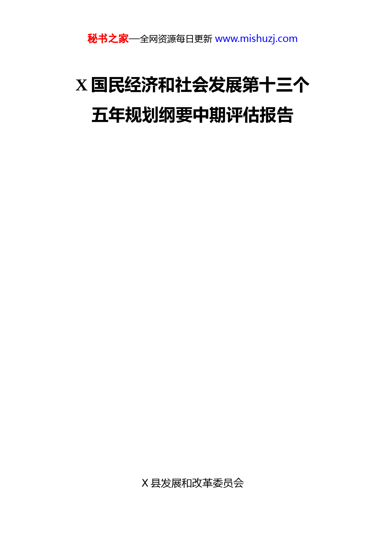 秘书之家—全网资源每日更新www.mishuzj.comX国民经济和社会发展第十三个五年规划纲要中期评估报告X县发展和改革委员会秘书之家—全网资源每日更新www.mishuzj.com2019年6月目录一、规划目标执行情况..........................................1(一)经济发展......................................................1(二)转型创新......................................................3(三)城镇发展......................................................4(四)民生保障......................................................4(五)绿色发展......................................................5二、规划主要任务完成情况.....................................6(一)园区转型升级步伐加快...................................6(二)工业经济提质增量.........................................7(三)现代服务业提速增效......................................8(四)现代都市农业加快发展...................................9(五)新型城镇化建设进程加快..............................10(六)创新能力进一步提高....................................11(七)对外经济合作卓有成效.................................12(八)生态文明建设逐渐加强.................................13(九)全民幸福指数不断提升.................................14三、规划实施存在的主要问题与困难.........................17(一)部分指标与预期有一定差距...........................17(二)产业结构有待优化升级.................................17秘书之家—全网资源每日更新www.mishuzj.com(三)招商引资项目进展不顺.................................18(四)城乡建设需加快推进....................................18(五)社会管理面临新挑战....................................19四、当前发展面临的机遇与挑战..............................19五、进一步推进规划实施的对策建议.........................21(一)立足制造强县,提升发展质量和效益..............21(二)加强招商引资,提速提效项目建设.................22(三)发展民营经济,激发县域经济活力.................22(四)扩大对外开放,对接服务长三角城市群...........23(五)集聚资源要素,扎实推进乡村振兴.................24(六)做好规划前期研究,备战“十四五”发展........24附件:X县“十三五”规划主要指标完成情况..................26秘书之家—全网资源每日更新www.mishuzj.com根据省市县关于开展“十三五”规划实施情况中期评估工作的安排,县发展和改革委员会对X县国民经济和社会发展第十三个五年规划纲要实施情况进行中期评估。“十三五”以来,全县上下坚持以党的十九大精神和习近平新时代中国特色社会主义思想为引领,深入贯彻习近平总书记系列重要讲话精神,全力实施五大发展行动计划,扎实推进经济社会高质量发展,统筹推进稳增长、调转促、去降补、全创改、放管服、惠民生、防风险各项工作,全县经济社会保持了平稳健康发展的良好态势,为推动新时代X高质量发展奠定了更加坚实的基础。一、规划目标执行情况(一)经济发展“十三五”以来,我县经济总量持续保持在全省县级前列,财政收入、社会消费品零售总额等指标较好完成“十三五”期间各年度目标任务。地区生产总值,“十三五”规划目标突破500亿元2016年实现地区生产总值297.3亿元,2017年实现地区生产总值341.7亿元,2018年实现地区生产总值385.85亿元,实现程度达到77%,从当前经济运行及展望,继续保持两位数增长有困难,完成“十三五”规划目标有一定困难。人均国民生产总值,“十三五”规划目标16000美元,2016年人均国民生产总值为9400美元,2017年人均国民秘书之家—全网资源每日更新www.mishuzj.com生产总值达10595美元,2018年实现人均国民生产总值12184美元,实现程度达到76.2%,预计实现“十三五”规划目标有一定困难。财政收入,“十三五”规划目标突破65亿元,2016年财政收入为37.2亿元,2017年财政收入达41.9亿元,2018年实现财政收入46.3亿元,实现程度达到71.2%,预计可顺利实现“十三五”规划目标。固定资产投资,“十三五”规划目标为年均增长11%,2016年固定资产投资增长14.3%,2017年固定资产投资增长9%,2018年固定资产投资增长12.6%,由于省统计局对固定资产投资的统计口径进行了调整,按照新统计口径,今后两年投资保持两位数增长有一定困难。社会消费品零售总额,“十三五”规划目标120亿元,2016年社会消费品零售总额为79.3亿元,2017年社会消费品零售总额达89.3亿元,2018年社会消费品零售总额完成97.6亿元,实现程度77.9%,预计可顺利实现“十三五”规划目标。外贸进出口总额,“十三五”规划目标2.5亿美元,2016年外贸进出口总额达2.07亿美元,2017年外贸进出口总额为1.70亿美元,2018年实现外贸进出口总额2.03亿美元,实现程度81.2%,预计可实现“十三五”规划目标。实际利用外商直接投资,“十三五”规划目标1.9亿美秘书之家—全网资源每日更新www.mishuzj.com元,2016年实际利用外商直接投资为1.61亿美元,2017年实际利用外商直接投资达1.94亿美元,2018年实际利用外商直接投资完成2.22亿美元,已提前完成“十三五”规划目标。(二)转型创新“十三五”以来,我县创新引领转型发展,转型创新成果取得长足进展,部分指标已提前实现“十三五”规划目标。三次产业结构,“十三五”规划目标8:68:24,2016年三次产业结构为9.3:64.2:26.5,2017年三次产业结构为8.3:65.2:26.5,2018年三次产业结构为7.7:60.4:31.9。规模以上工业增加值,“十三五”规划目标为年均增长8%,2016年规模