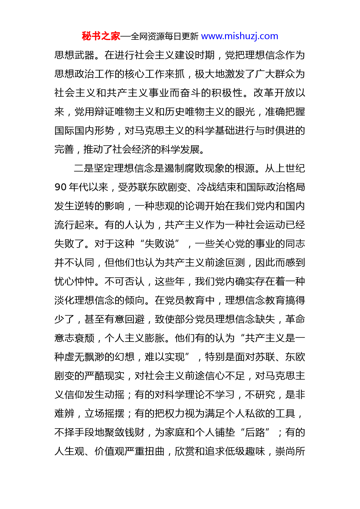 秘书之家—全网资源每日更新www.mishuzj.com市场监管局专题党课:坚定理想信念,奋发实干作为今天我们组织这样一次党课,我结合市场监管工作实际,围绕“坚定理想信念,奋发实干作为”主题,和大家共同学习党的理论,交流学习心得,提高党性修养。一、坚定理想信念是市场监管事业发展的精神支柱一是坚定理想信念是我党长期以来的精神支柱。信念是指人们坚信自己所干的事、所追求的目的是正确的,因而在任何情下都毫不动摇地为之奋斗、执著追求的意向动机。一个人的理想、信念、信仰,可以决定他对生活、对工作的态度,决定他的人生道路;一个政党的理想信念,可以决定它对人民、对群众的态度,决定它的生死存亡。回顾中国共产党建党100年的奋斗史,无数革命先辈抛头颅、洒热血,都是因为有坚定的理想信念这一精神支柱作支撑。在中国共产党建党初期,党用革命的理想信念引领党员干部和广大红军战士,提高他们的革命觉悟,指导他们打破了敌人多次残酷的“围剿”,二万五千里长征,更是坚定理想信念的杰出写照。抗日战争和解放战争时期,我们党又通过建立广泛的民族统一战线和新民主主义革命路线,使中国共产党为之奋斗的崇高理想和信念得到广大群众的认同,使它成为组织群众、武装群众的强大秘书之家—全网资源每日更新www.mishuzj.com思想武器。在进行社会主义建设时期,党把理想信念作为思想政治工作的核心工作来抓,极大地激发了广大群众为社会主义和共产主义事业而奋斗的积极性。改革开放以来,党用辩证唯物主义和历史唯物主义的眼光,准确把握国际国内形势,对马克思主义的科学基础进行与时俱进的完善,推动了社会经济的科学发展。二是坚定理想信念是遏制腐败现象的根源。从上世纪90年代以来,受苏联东欧剧变、冷战结束和国际政治格局发生逆转的影响,一种悲观的论调开始在我们党内和国内流行起来。有的人认为,共产主义作为一种社会运动已经失败了。对于这种“失败说”,一些关心党的事业的同志并不认同,但他们也认为共产主义前途叵测,因此而感到忧心忡忡。不可否认,这些年,我们党内确实存在着一种淡化理想信念的倾向。在党员教育中,理想信念教育搞得少了,甚至有意回避,致使部分党员理想信念缺失,革命意志衰颓,个人主义膨胀。他们有的认为“共产主义是一种虚无飘渺的幻想,难以实现”,特别是面对苏联、东欧剧变的严酷现实,对社会主义前途信心不足,对马克思主义信仰发生动摇;有的对科学理论不学习,不研究,是非难辨,立场摇摆;有的把权力视为满足个人私欲的工具,不择手段地聚敛钱财,为家庭和个人铺垫“后路”;有的人生观、价值观严重扭曲,欣赏和追求低级趣味,崇尚所秘书之家—全网资源每日更新www.mishuzj.com谓“气派”、“潇洒”,挖空心思往低级龌龊的场所里钻,整日离宴口馋,远色心烦;有的则崇洋媚外,向往西方的“花花世界”。凡此种种,若不及时改弦更张,重铸“灵魂”,就很容易滑向腐败堕落,成为人民的罪人。因此,对共产党人来说,理想信念的动摇是最危险的动摇,不消除这种危险的苗头,党就会失去战斗力和免疫力,反腐败也会像割韭菜那样,割一茬又长一茬,治标不治本,反不胜反。中国共产党人必须矢志不渝地把坚定共产主义理想信念放在党的思想建设的首位,这才是反腐倡廉的治本之举。三是坚定理想信念是确保市场监管事业持续发展的根本保证。市场监管机关是国家市场的行政监督机关,监督管理权的统一、正确、高效行使,取决于一支高素质的廉洁的监管队伍。监管队伍如果缺少一种统一的价值观念,就难以形成统一的精神力量,从而丧失凝聚力和战斗力,也就难以实现“维护公平正义”的监管主题。因此,监管人员的理想信念,是监管队伍建设的根本,更是发挥市场监管职能的关键。坚定的理想信念,是共产党人强大的精神支柱和不懈的追求,是终生为之奋斗的崇高目标。坚持正确的理想信念是共产党员先进性的最集中体现。从实践看来,市场监管机关要担负起强化市场监督、维护市场安全的重大使秘书之家—全网资源每日更新www.mishuzj.com命,最根本的一条是坚定理想信念。在当今特别错综复杂的国际国内现状下,市场监管干部面临的诱惑越来越多,要建设一支政治坚定的市场监管队伍,必须坚定理想信念,确保正确的政治方向,高举建设新时代中国特色的社会主义的旗帜,不忘初心,牢记使命。二、恪守廉洁从政是市场监管事业发展的重要保障(一)廉洁从政是继承中华民族的传统美德的需要。中国人历来讲究廉洁自律,认为“廉洁是人的第一美德”,大凡有所成就、名垂青史的人,都把廉洁自律作为立身之本、处世之要,留下了许多精辟的论述和自律的典范。比如在金钱与道德的关系上,强调“见利思义”、“先义后利”。在做人与做官上,倡导“修身、齐家、治国、平天下”,讲求“达则兼济天下,退则独善其身”,认为修身养性是做人、做事、做官的基础,清代著名学者张聪贤说:“吏不畏吾严,而畏吾廉;民不服吾能,而服吾公。公则民不敢慢,廉则吏不敢欺。公生明,廉生威。”这种廉洁自律的传统美德历经几千年的积淀,今天更有巨大的现实意义,是我们提高个人修养的宝贵财富,我们每个市场监管干部都要传承这种美德,践行这种美德。(二)廉洁从政是践行新时代中国特色社会主义