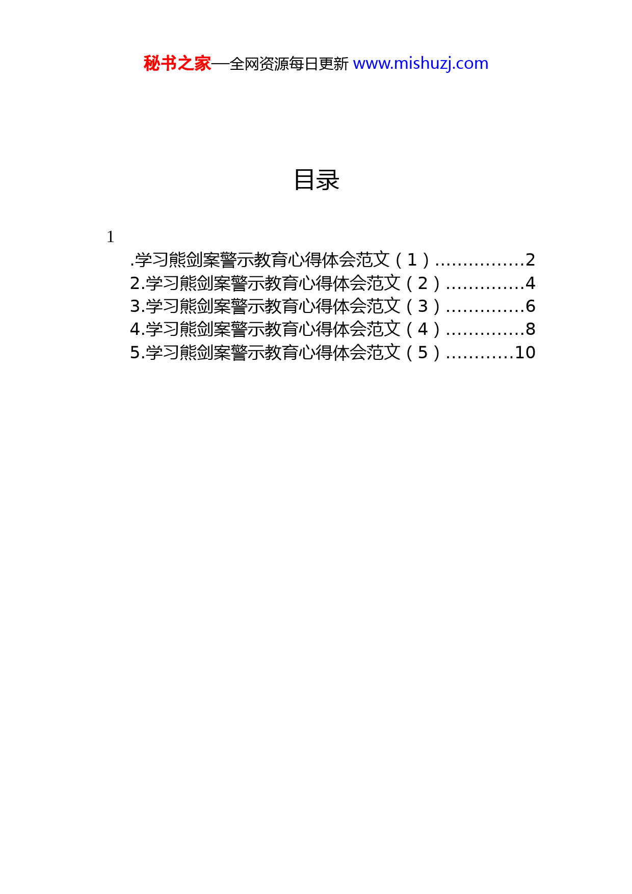 秘书之家—全网资源每日更新www.mishuzj.com目录1.学习熊剑案警示教育心得体会范文(1)................22.学习熊剑案警示教育心得体会范文(2)..............43.学习熊剑案警示教育心得体会范文(3)..............64.学习熊剑案警示教育心得体会范文(4)..............85.学习熊剑案警示教育心得体会范文(5)............10秘书之家—全网资源每日更新www.mishuzj.com学习熊剑案警示教育心得体会范文(1)通过学习,我认识到熊剑种种违纪违法问题,都与其理想信念不坚定,忽视党性修养、放松思想改造有关。作为纪检监察干部,要把理想信念教育摆在首位,对手中权力心存敬畏,对党和人民的信任心存敬畏。一是加强学习,拧紧理想信念的思想“总开关”。很多腐败分子并不是一开始就心生贪念,而是在自己手中掌握了一定的权力后,面对物欲横流、灯红酒绿,自己思想上经不起诱惑,从收一条烟、一瓶酒、一张购物卡开始,慢慢地放松了警惕,总以为这是人之常情,殊不知,当迈出第一步时,以后面对别人送来的几十万现金都会觉得正常不过了。作为一名党员干部,不仅要学党规党纪,学法守法,更要学习党的理论知识,学习习近平新时代中国特色社会主义思想,用理论武装头脑,坚定理想信念,提高自身修养,时刻不忘初心。二是谨慎交友,加强“八小时以外”的管理。从近几年查处的违纪违法案件中,大多数都是发生的“八小时以外”,这些违纪违法的人员总认为“八小时以外”无人监管,无人知晓,殊不知,风过留痕,雁过留声,做了违法乱纪之事,总有一天会被揪出来。八小时以内,大多数人都能遵规守纪,但八小时以外能否做到就要看个人的自觉性了。志同道合的人在一起交流工作心得,分享生活经验同流合污之人在一起就不一定能干出什么好事。所以谨慎交友,净化朋友圈是很重要的。三是加强廉洁文化的学习和运用。廉政文化,关注重点是公共权力机构的人员,强调清廉不贪、勤政不迂。廉洁文化,不但关注党员干部和公职人员,还关注包括企业秘书之家—全网资源每日更新www.mishuzj.com员工的廉洁守职、社会大众的家风家教等在内的整个社会环境和社会风气的改造。近年来各级对家风家教都非常重视,也开展了很多活动。比如,委机关去年开展的政治家访,不仅是体现委领导对干部的关心关爱,也是通过家访进一步了解干部家属对其工作的支持,以及八小时以外的监督。秘书之家—全网资源每日更新www.mishuzj.com学习熊剑案警示教育心得体会范文(2)纪法面前人人平等,纪检监察干部身份不是“护身符”。纪检监察干部作为执纪执法者,更应该带头遵纪守法,要时刻保持清醒头脑,把纪律刻在心里,把法律印在脑海,时刻不忘自己是执纪执法者,自觉用党纪国法约束自己、监督自己。一、坚守理想信念,巩牢思想防线。熊剑严重违纪违法案中,思想空虚不注重学习,归根到底都是放弃了政治理论学习,党性不纯,三观不正造成的。正因为没有了政治理论的指导,政治素质也严重营养不良,政治上失了魂,思想上缺了钙,没有理想信念的人生,就像迷失方向,失去动力的小船只能随风漂泊在急流险滩之中。作为纪检监察干部,一定要拧紧理想信念“总开关”,把关好对党忠诚的“方向盘”,增强政治定力,持续深学细悟习近平新时代中国特色社会主义思想,做一个政治过硬、本领高强的纪检监察干部。二、自觉净化“朋友圈”,把好交往关。有些党员干部职务提升后,一些打着“老乡”“朋友”旗号慢慢接近的人突然多了起来,开始他们慷慨大方热情周到一起吃喝玩乐,称兄道弟,之后就是以利相交各有所图。长此以往,就半推半就,心甘情愿地步入圈套,成为别人的差役。天下没有免费的午餐,你眼中看到的是诱人的香饵,背后却是能让人致命的鱼钩,所有被围猎开始时的甘甜,到头来都会变成苦酒一杯,再多的圈子,最后都会变成套在脖子上的绳圈。作为纪检监察干部,一定要警惕身边那些吹吹拍拍,拉拉扯扯的人,警惕“温水煮青蛙”的陷阱,远离所谓的圈子,抽身复杂的人际关系,秘书之家—全网资源每日更新www.mishuzj.com不该吃的饭不吃,不该赴的宴不赴,不该交的朋友不交。三、敬畏权力,做到遵纪守法的表率。权力是一把双刃剑,稍不注意将蜕变成权力的奴仆、金钱的囚徒。什么是规则规定,有什么纪律,法律的红线底线在哪里,纪检监察干部应比普通人清楚得多。作为纪检监察干部,带头强化纪法观念,严守纪法底线,主动把自己置身于最严格监督的“聚光灯”下,把监督作为党的关怀,组织的厚爱,做到自觉接受监督,诚恳接受监督,乐于接受监督,习惯于在“聚光灯”下工作,做遵纪守法的表率。秘书之家—全网资源每日更新www.mishuzj.com学习熊剑案警示教育心得体会范文(3)熊剑背弃初心使命,打着纪检监察机关的旗号谋取私利,让人触目惊心。作为纪检监察干部,不断补足思想之钙,强化政治定力,铸牢忠诚之魂,要树牢“以人民为中心”发展理念,用好人民赋予我们的权利。一、坚定理想信念,牢记初心使命。巡察作为党内最高监督,充分体现了其政治属性。我们必须坚守巡察的政治定位,加强政治理论学习,不断提升政治理论素养,牢牢把握巡视巡察工作方针,严守巡视巡察工作纪律,增强斗争精神和斗争本领。牢固树立大局观念,明判大势,不断增强政治“三力”。坚决捍卫"两个确立",牢固树立"四个意识",坚定"四个自信",坚决做